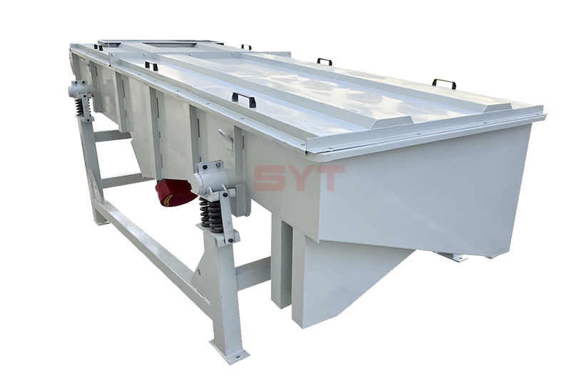 直线筛主要由筛箱、筛框、筛网、振动电机、电机台座、减振弹簧、支架等组成。