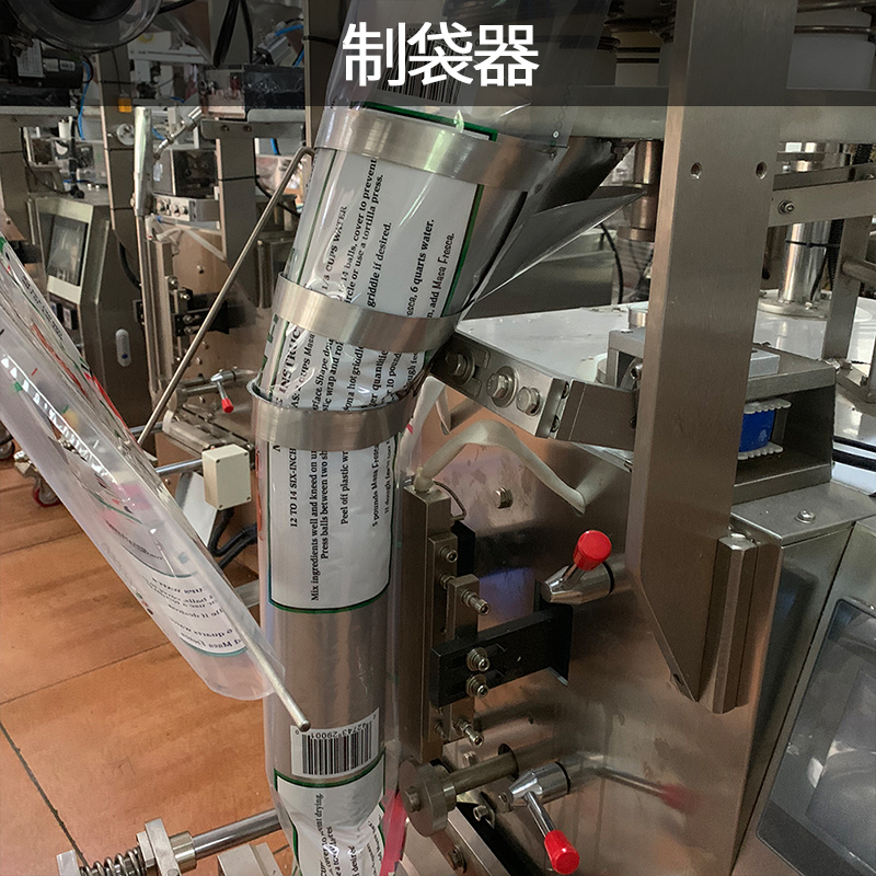 立式包装机主要由计量装置、传动系统、横封和纵封装置、翻领成型器、充填管及薄膜牵拉供送机构等部件组成。