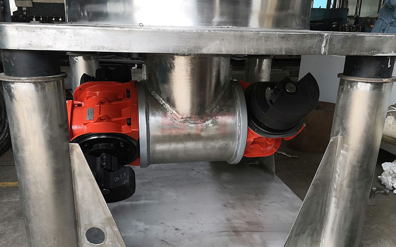 垂直振动提升机的结构,主要由提升槽、振动电机、减振系统和底座等组成。垂直振动提升机采用振动电机作为振动源,固定在提升槽上的两台相同型号的振动电机中心线交叉一定角度安装,并做相反方向自同步旋转,振动电机所带的偏心块在旋转时各个位置所产生的离心力之分力沿抛掷方向作往复运动,使支承在减振器上的整个机体不停振动,使物料在提升槽内被抛起的同时向上运动,物料落入入料槽后,开始被抛起,此时可以使物料与空气接触,还可以起到散热冷却的作用.该提升机对粉状、块状和短纤维状的固体物料(有粘性和易结块的除外)都可垂直输送,还可以完成对物料的干燥、冷却作用.分敞开式、封闭式两种结构。